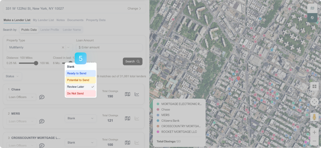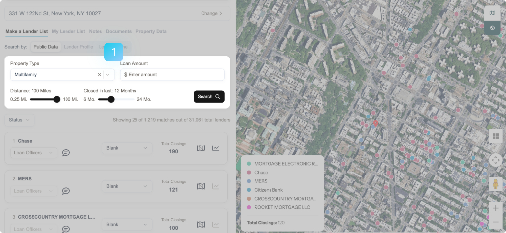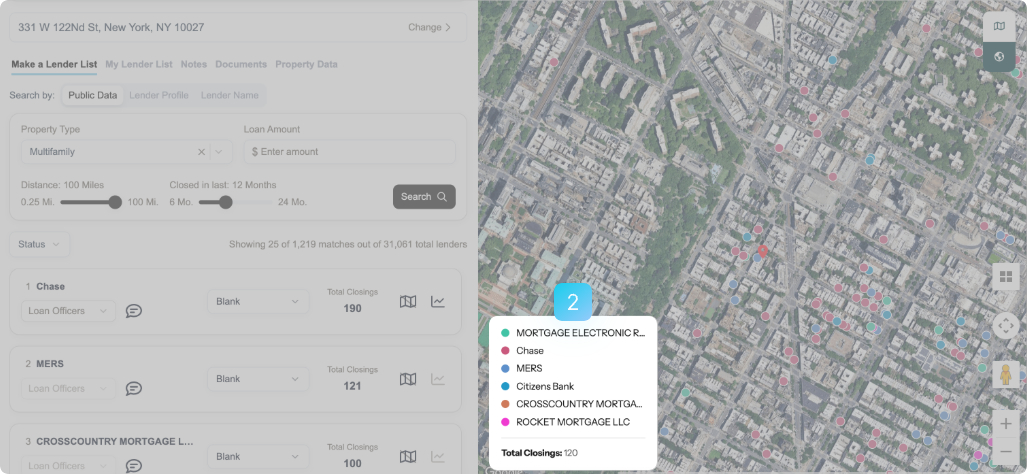 Avery shows you every relevant lender, sorted by fit. See who's active near your property on our interactive map.
